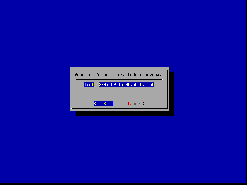 Vyberete-li v hlavní nabídce obnovu, zobrazí se seznam záloh včetně data vytvoření.