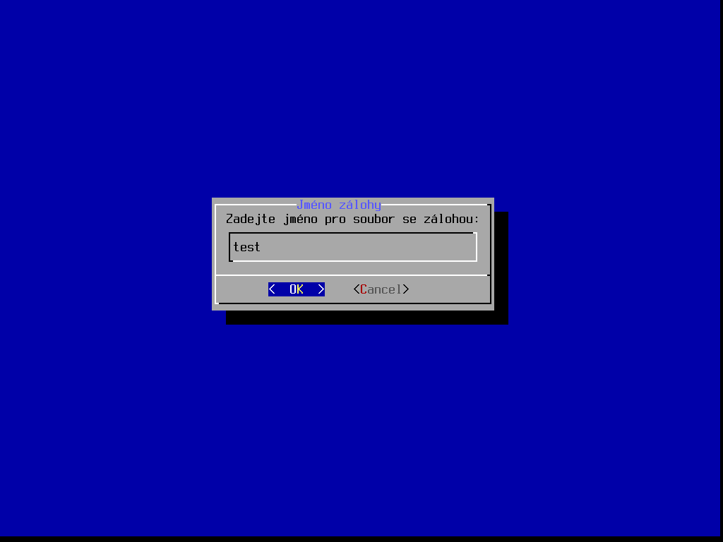 Zvolíte-li v hlavním menu zálohování, zobrazí se dotaz na jméno zálohy.
