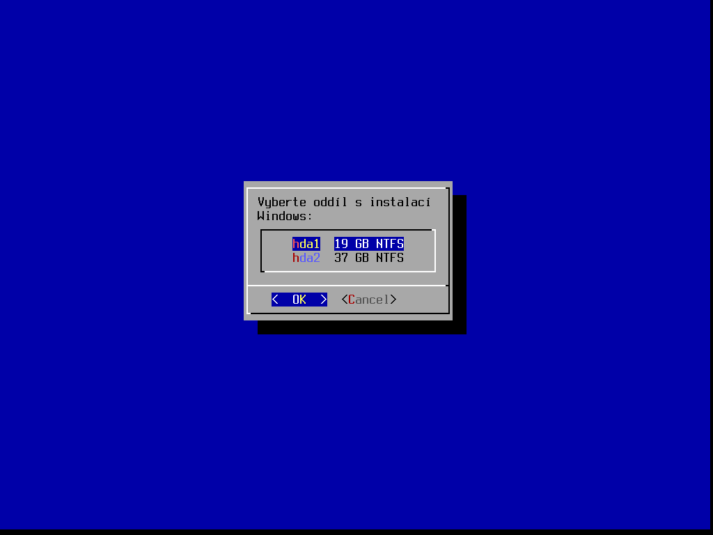 Pokud je na disku víc NTFS oddílů, zobrazí se nabídka.